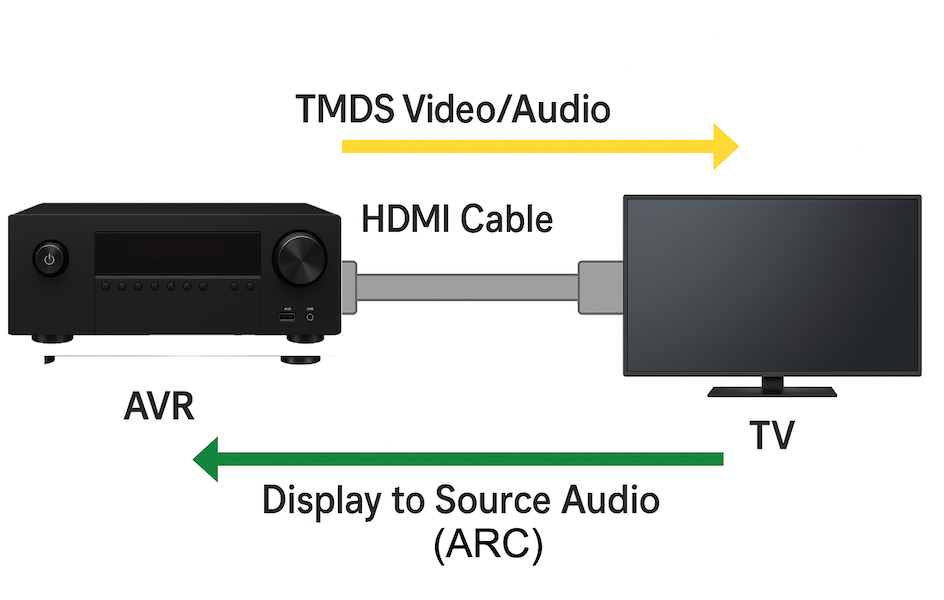 The Audio Return Channel, abbreviated as ARC, was introduced in HDMI Specification Version 1.4 as a means to simplify audio connectivity between display devices and external audio systems such as AV receivers and soundbars. Its core purpose is to eliminate the need for a separate stereo audio cable or a S/PDIF interface by enabling digital audio to travel in the reverse direction over the existing HDMI link from the display back to the source device. Great idea!